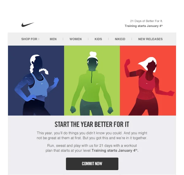 Brief: Create a nike.com experience that will guide girls to pick one of three 21 day challenges.
